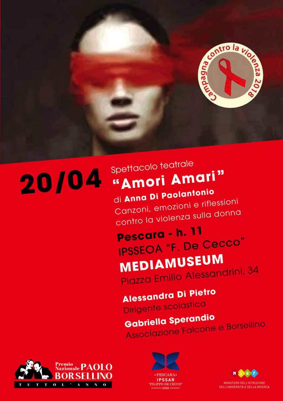 In collaborazione con l’IPSSEOA Filippo De Cecco di Pescara e l’Associazione Falcone e Borsellino insieme per lo spettacolo teatrale “Amori Amari” di