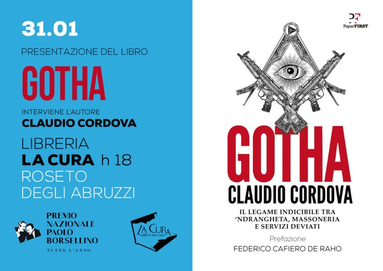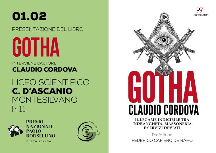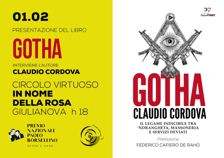 Claudio Cordova, in occasione degli appuntamenti del Premio Nazionale Paolo Borsellino “tutto l’anno”, presenta “Gotha“, il suo libro che spiega il legame tra ‘ndrangheta, massoneria e servizi deviati.