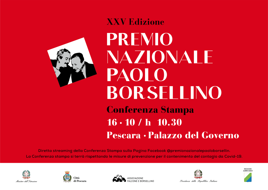 Sabato 16 Ottobre alle ore 10.30 al Palazzo del Governo di Pescara si terrà la Conferenza Stampa della XXV Edizione del Premio nazionale Paolo Borsellino 2021